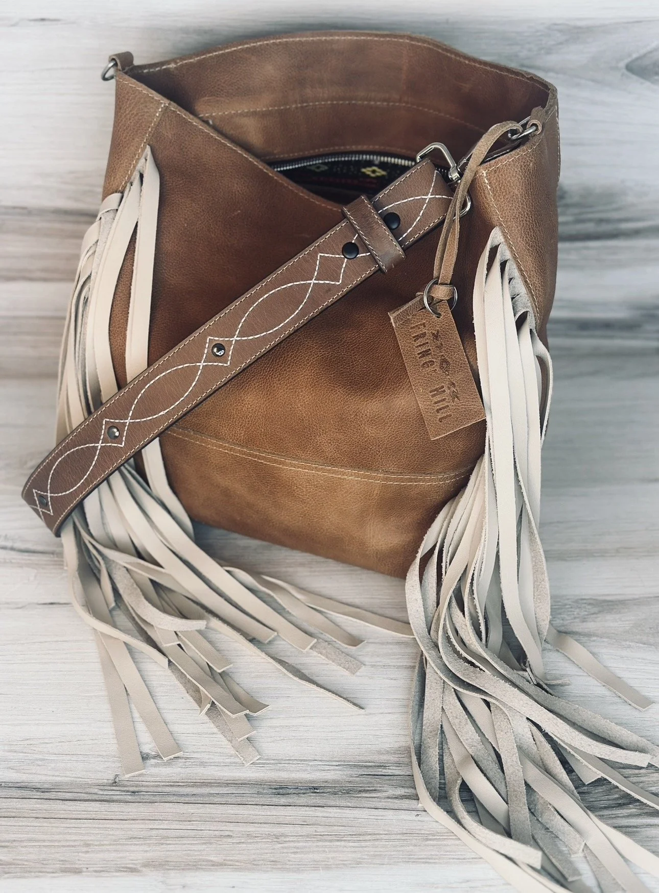 • All Fringe Hill bags are designed in Texas and shipped from our small Austin studio. Made in very small batches by a family of artisans in Mexico. We hand pick each leather hide, not one bag will be exactly the same. Designed, packed and made with care. 🤍